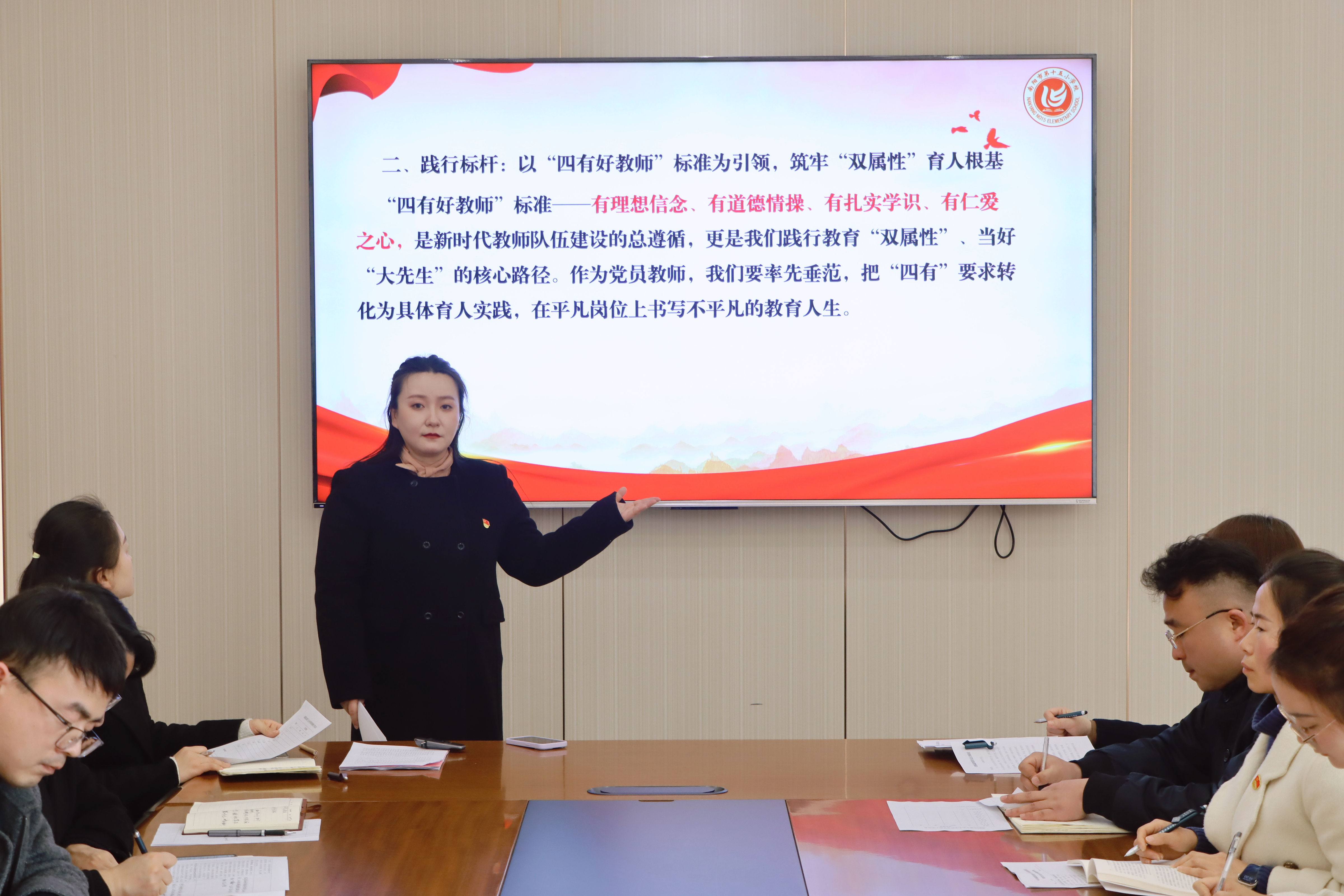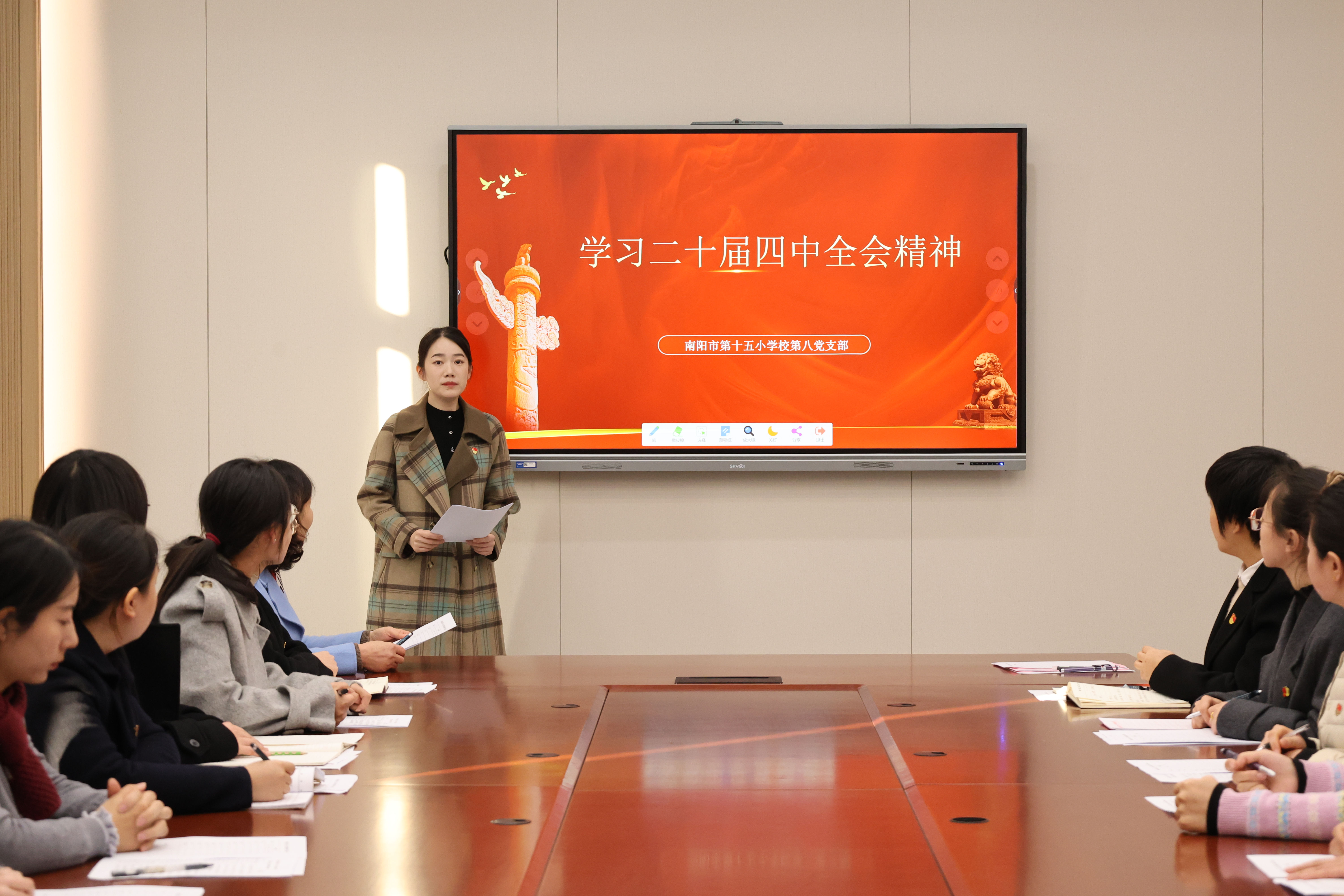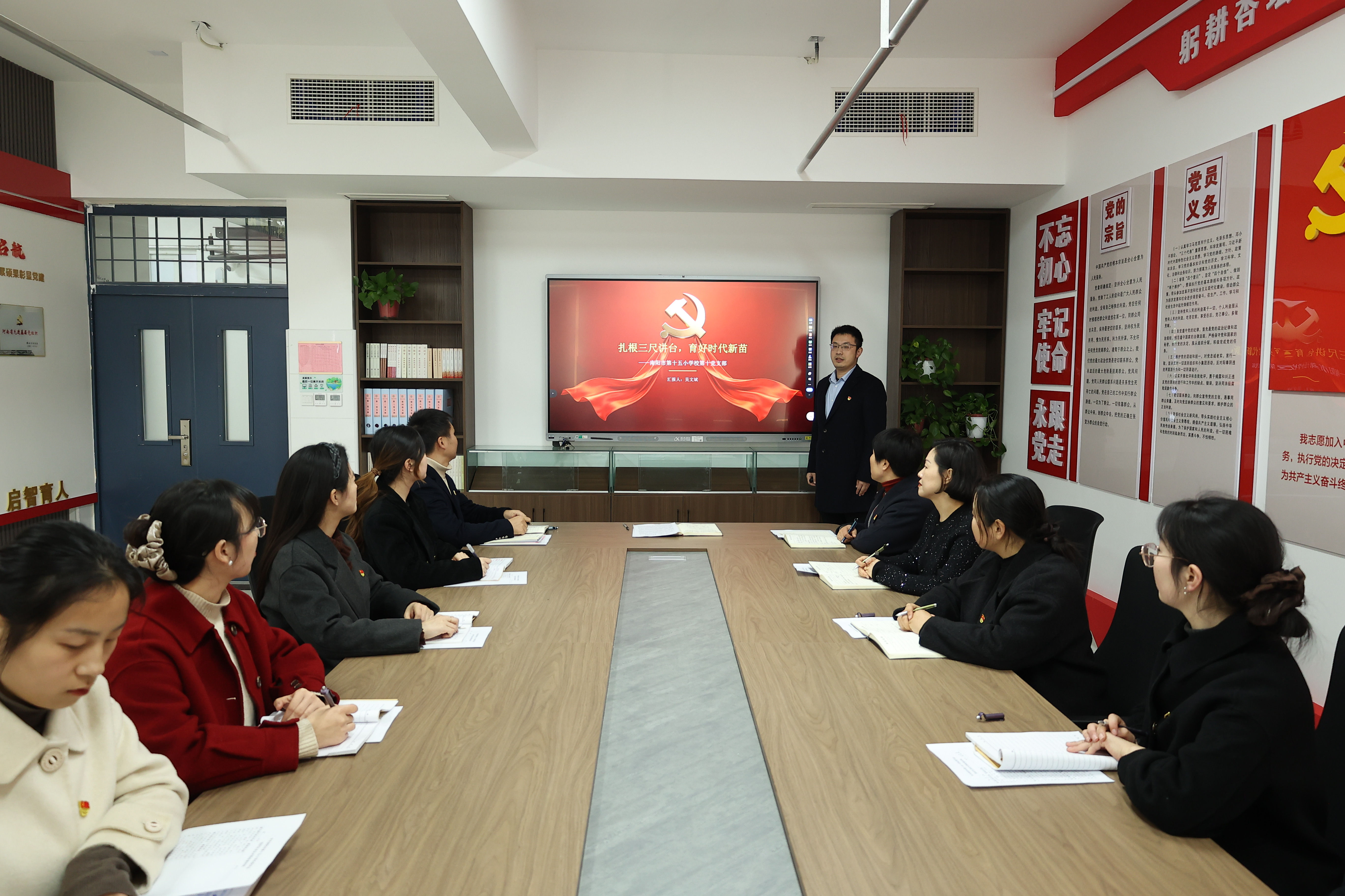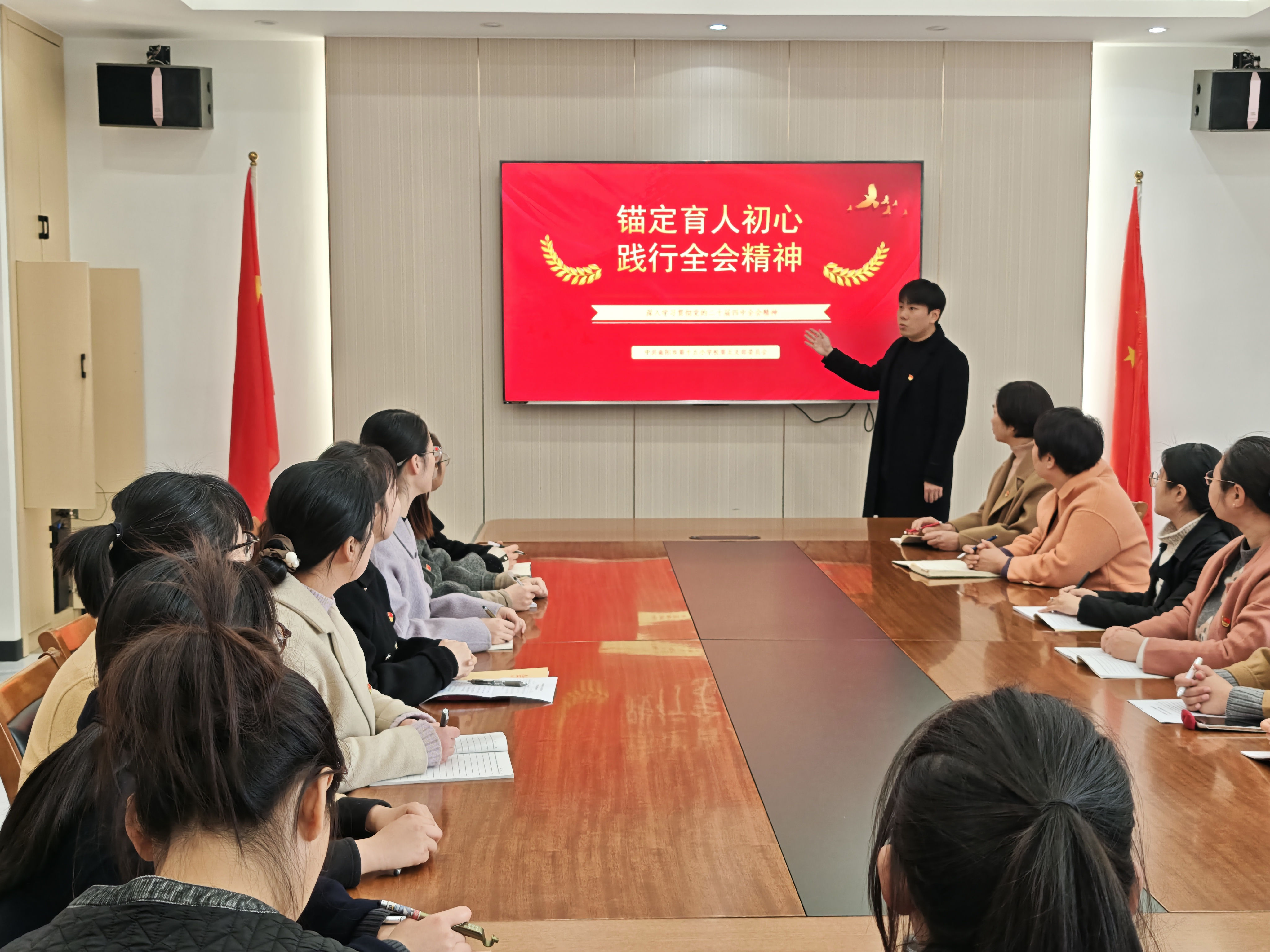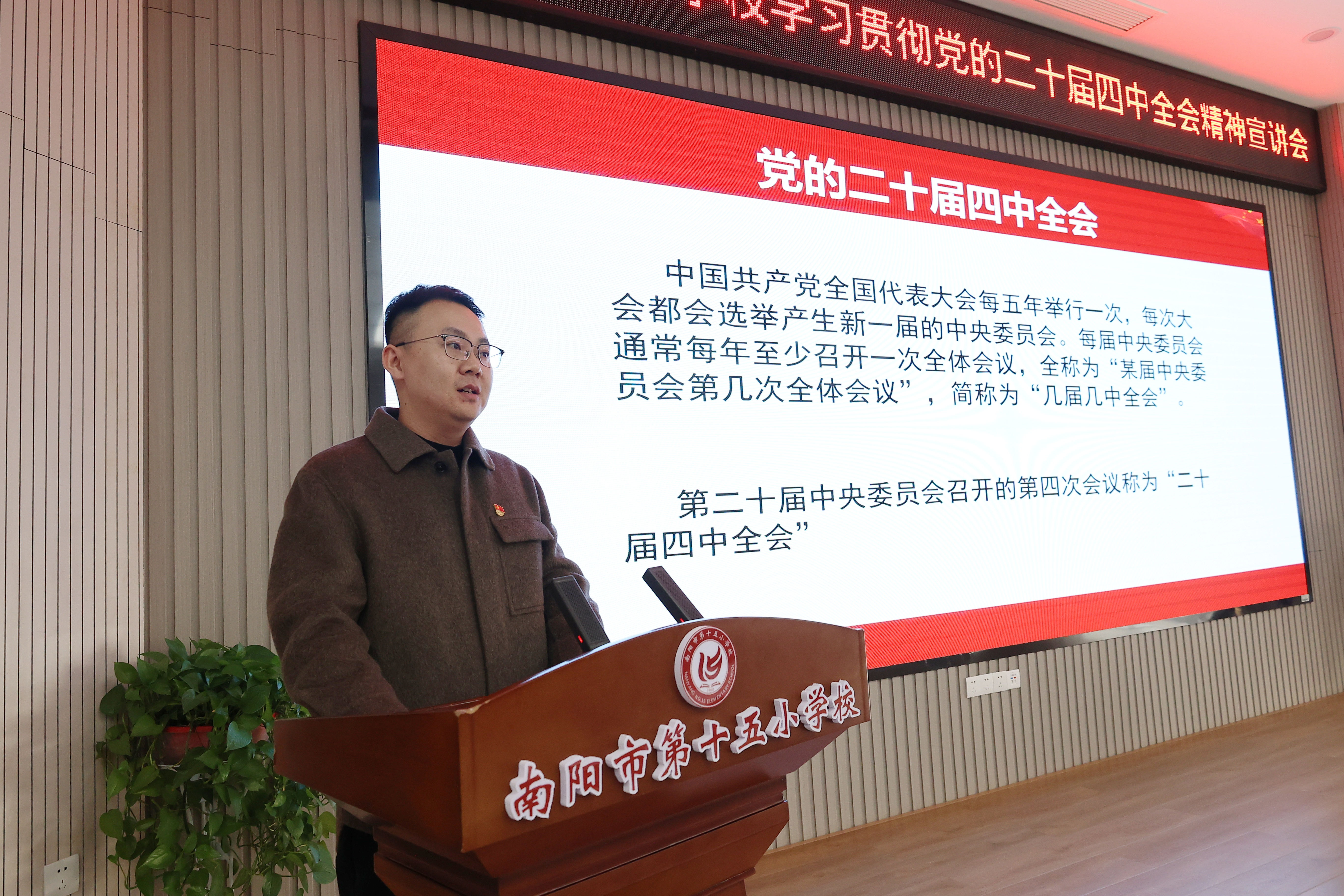 为深入学习党的二十届四中全会精神,加强教师思想政治建设,近日,我校组织全体教师开展系列专题宣讲活动,推动全会精神在教育教学一线落地生根。 学校党委书记、校长带头讲党课,围绕全会核心要义,结合基础教育实际,引导教师牢记“为党育人、为国育才”使命,落实立德树人根本任务。 学校邀请教师宣讲团成员、南阳市第十二小学校教科室副主任梁森作专题宣讲,结合河南教育发展与实践,解读全会精神,引导教师将中央部署转化为教育行动。 各党支部开展多样化学习,支部书记结合教育教学、班级管理等方面讲党课。党员教师围绕“课程思政”“提升教学能力”等开展研讨,明确实践路径。 活动中,教师们深受启发。大家纷纷谈到,将立足课堂实践,以学习成果赋能教学,提升师德素养与专业能力,做好学生的引路人。奋进新征程,诠释新担当。我校全体教师将从全会精神中汲取力量,以坚定的政治自觉、饱满的育人热情、扎实的教育行动,恪守初心、潜心育人,为培养栋梁之材筑牢坚实根基。